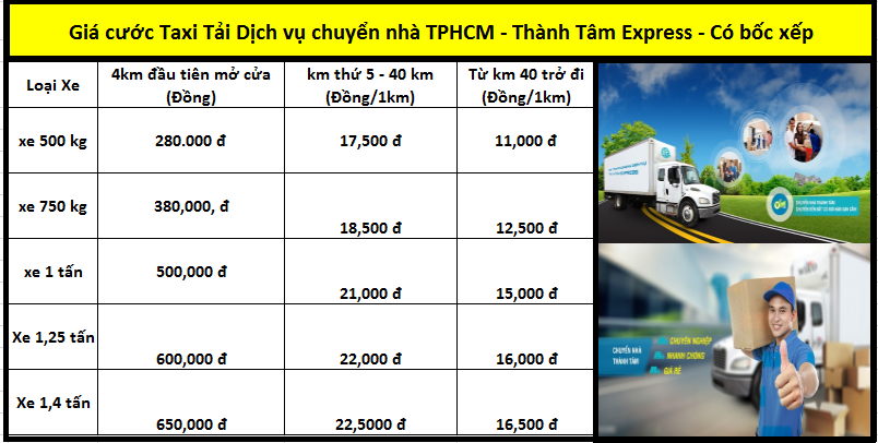 Bảng giá cước taxi tải dịch vụ chuyển nhà trọn gói TPHCM - Thành Tâm Express